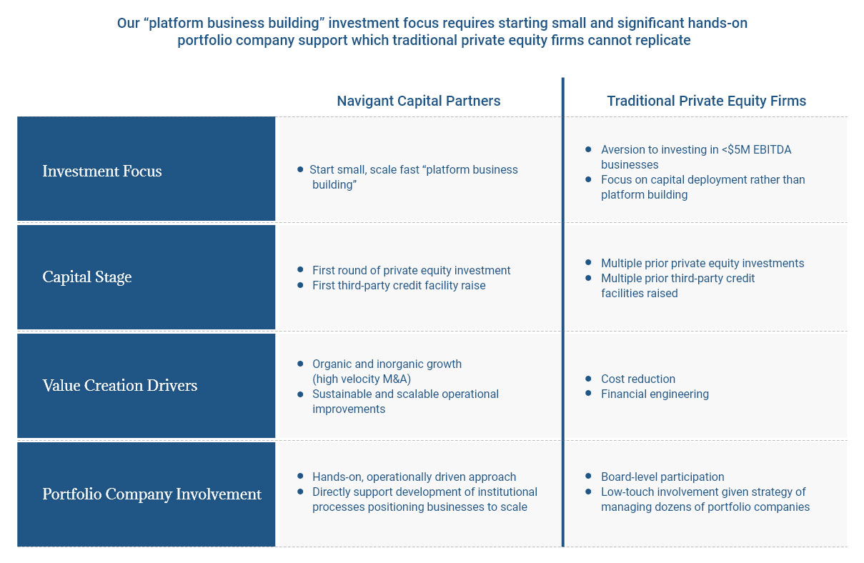 Our team has 20+ years of private equity experience building platforms in the middle market.